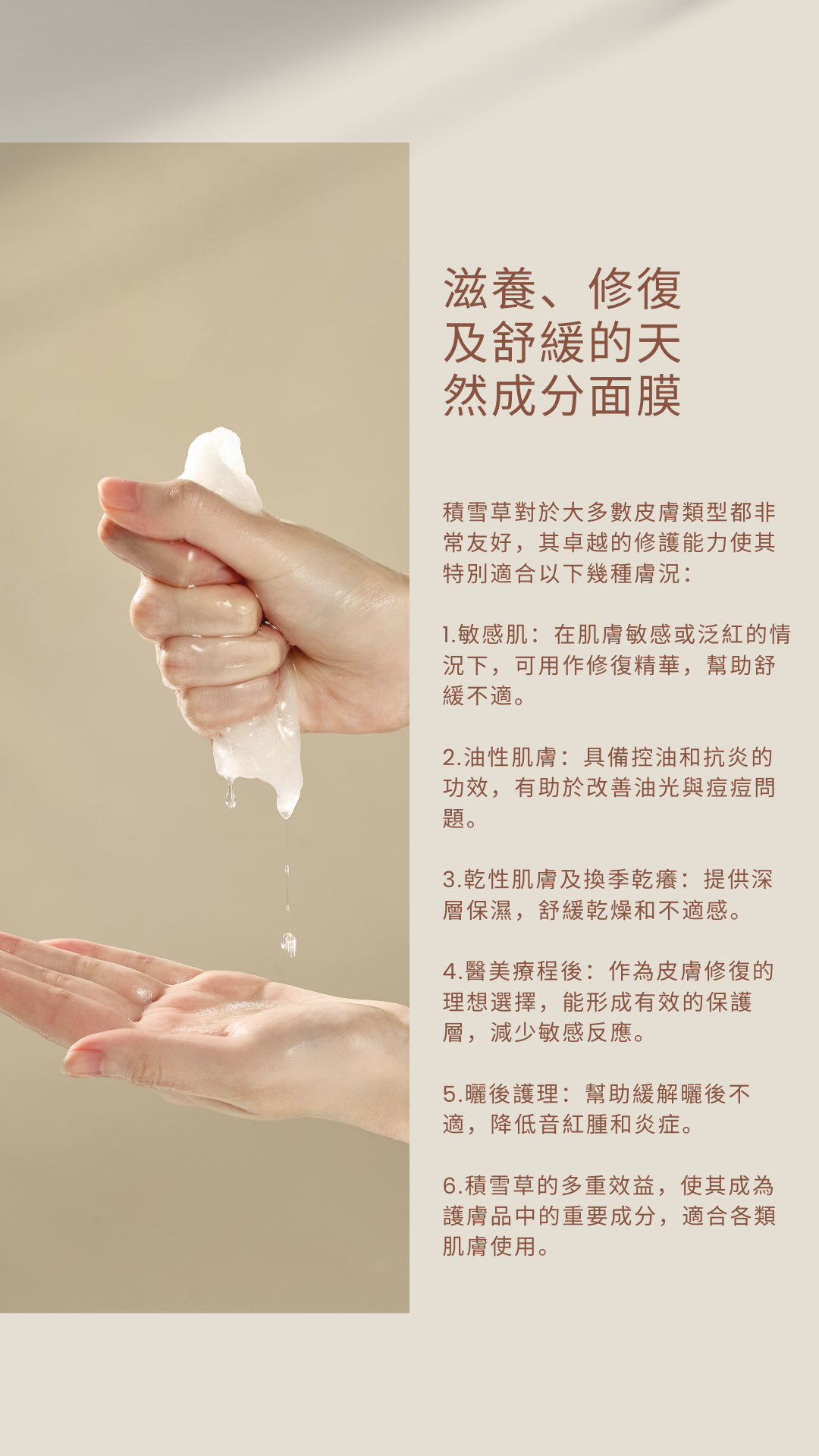 此面膜特別適合易紅、易癢、屏障受損、長期戴口罩或爆痘肌膚,是急救修復與日常舒緩保養的最佳選擇。