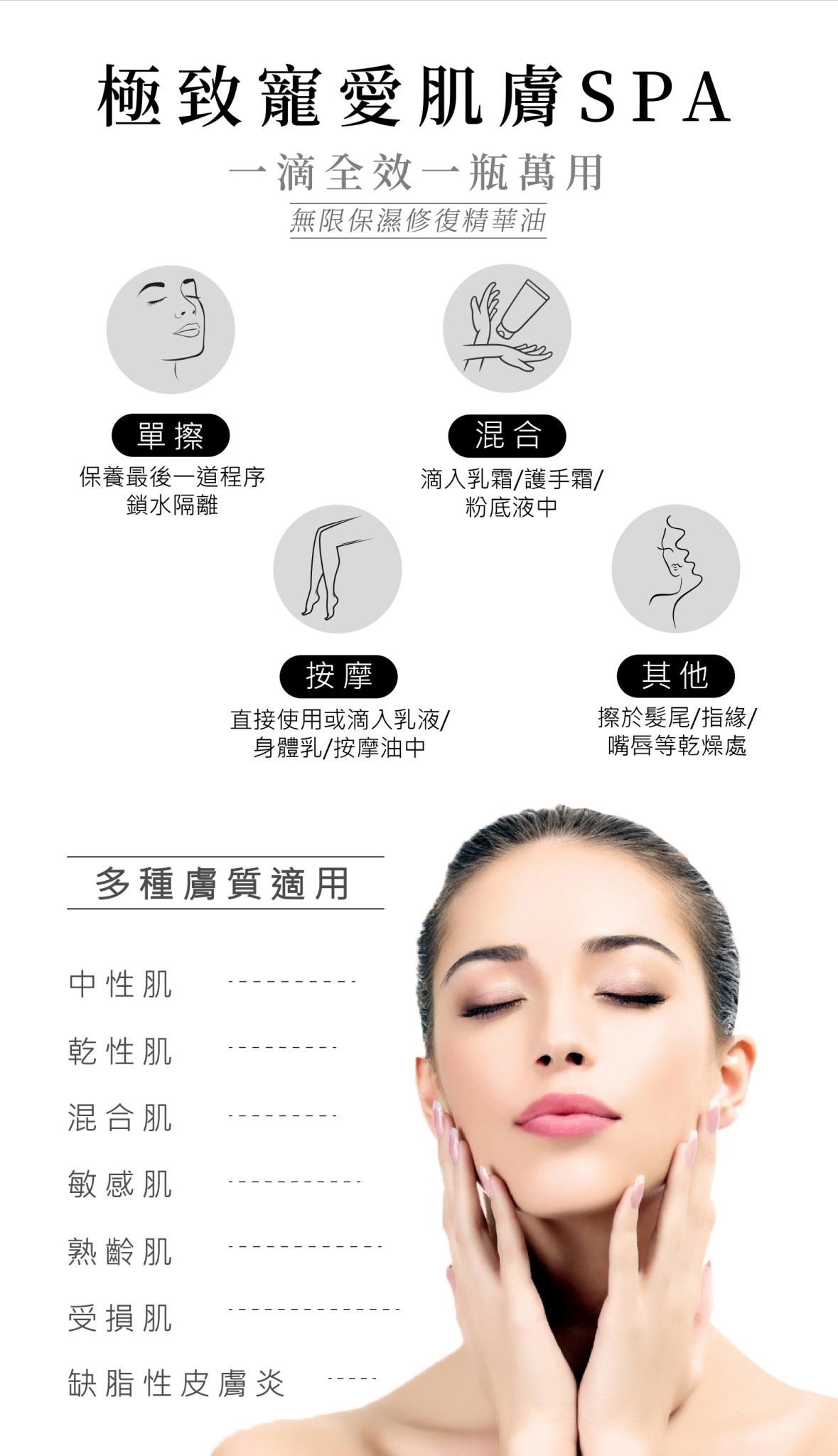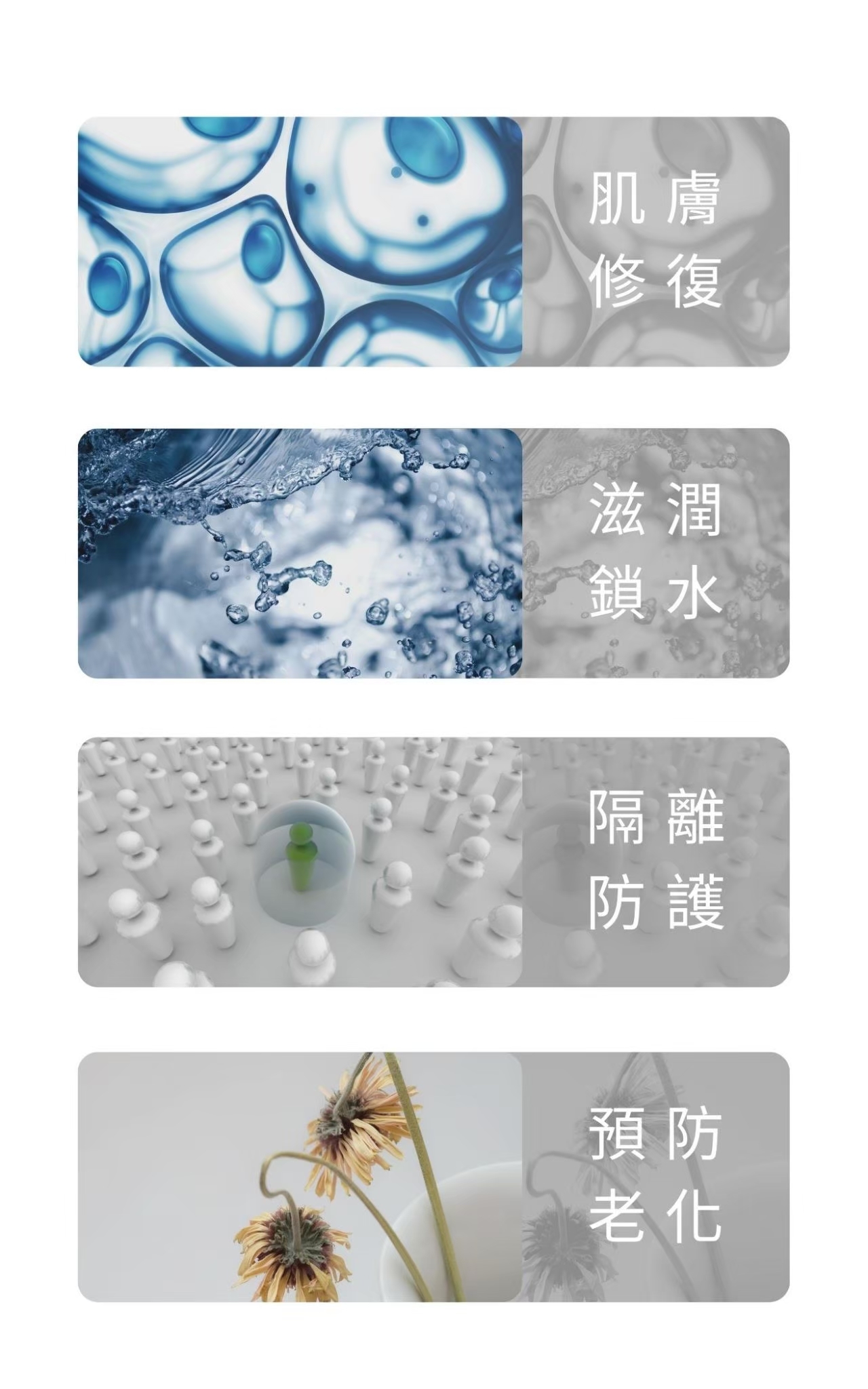 質地輕盈不黏膩,適合混合至乾性肌日常使用,也可混合面霜、粉底或夜間保養,加強滋潤與保護力。
