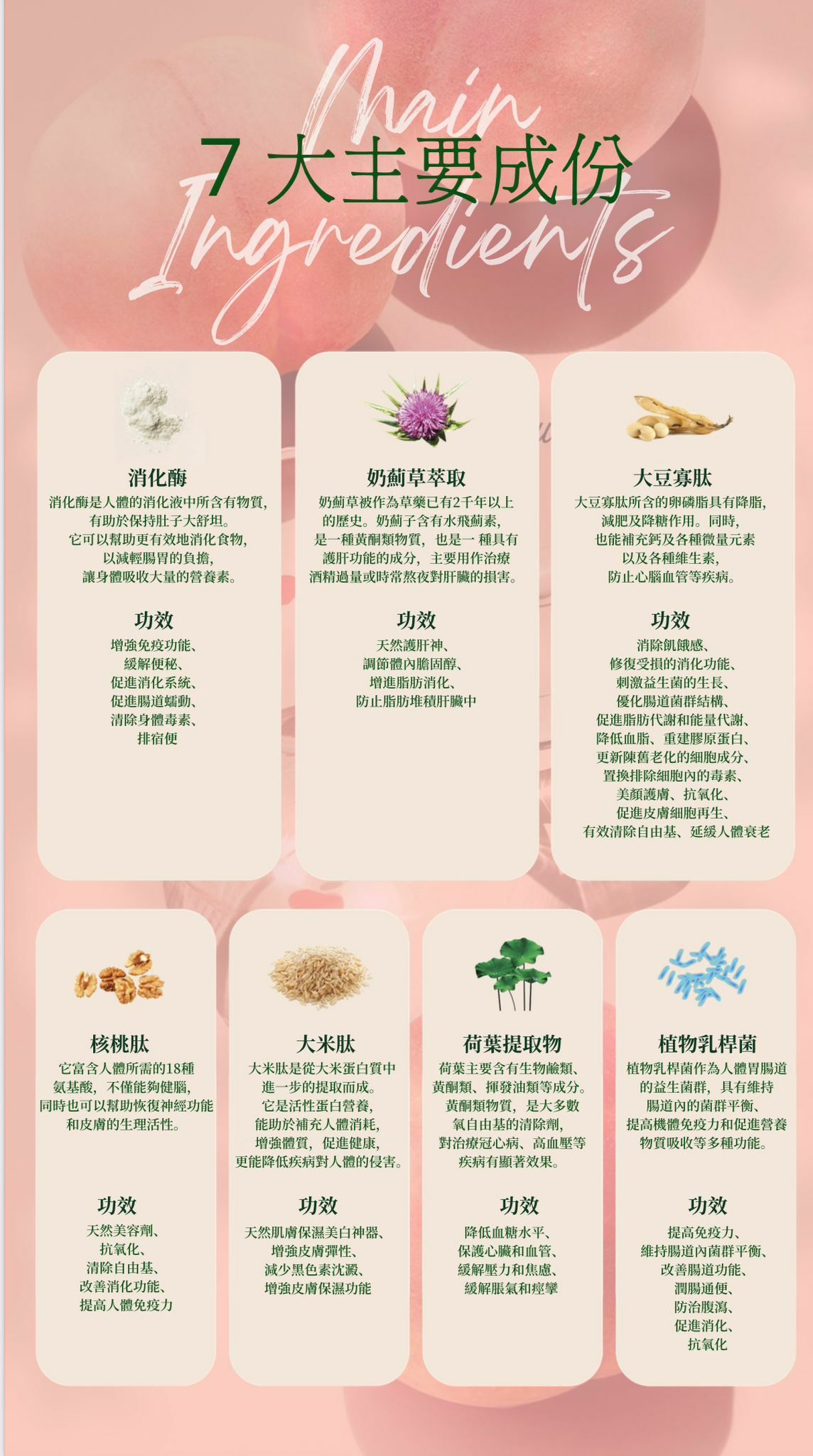 瘦身功效🏃🏼‍♀️:瘦身、飽腹感、消水腫、隔澱粉吸收、消除飢餓感、燃燒脂肪、控制食慾、減內臟脂肪、調理荷爾蒙導致的肥胖問題、降低熱量攝取、修復受損的消化功能、