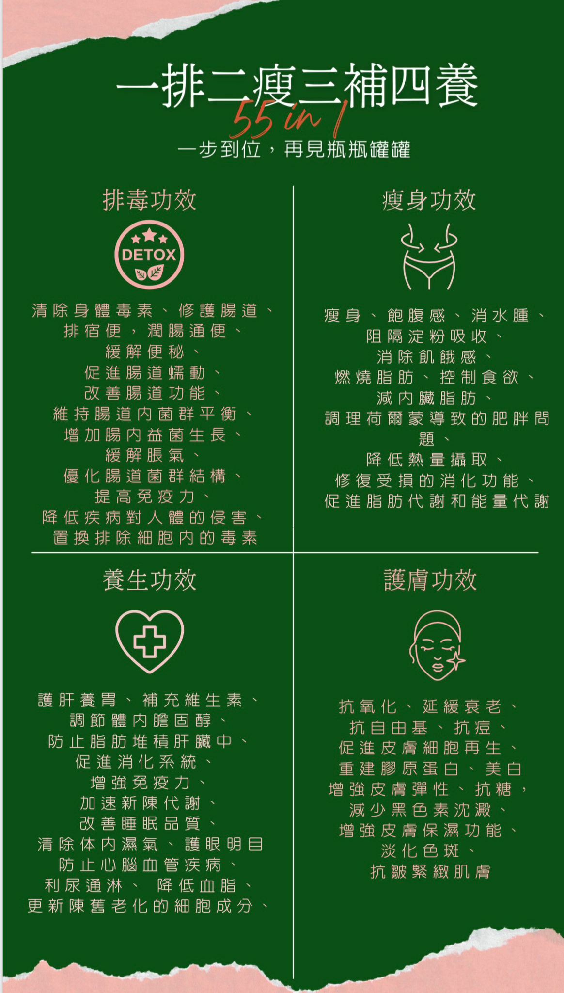 瘦身功效🏃🏼‍♀️:瘦身、飽腹感、消水腫、隔澱粉吸收、消除飢餓感、燃燒脂肪、控制食慾、減內臟脂肪、調理荷爾蒙導致的肥胖問題、降低熱量攝取、修復受損的消化功能、